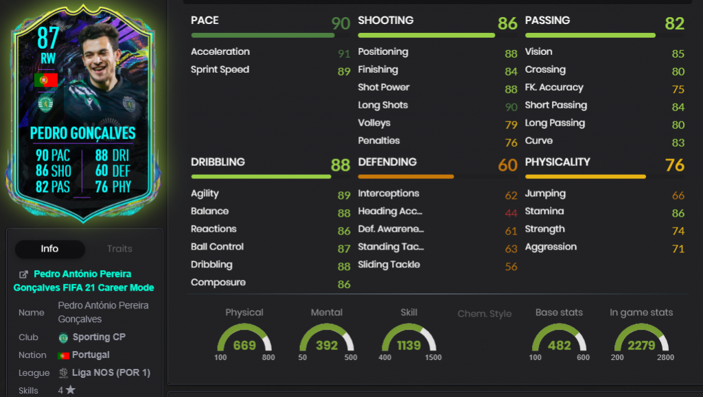 Pedro Antonio Pereira Goncalves Fifa 21 87 Future Stars Rating And Price Futbin